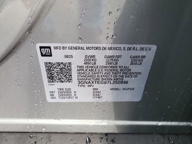 Sterling Gray Metallic 2026 Chevrolet Equinox RS AWD 8-Speed Automatic 1.5L DOHC AWD.
