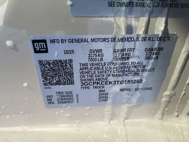 White 2026 Chevrolet Silverado 1500 Custom Trail Boss 4WD 8-Speed Automatic 2.7L I4 Turbocharged DOHC 16V LEV3-SULEV30 310hp 8-Speed Automatic, 4WD, Black Cloth.