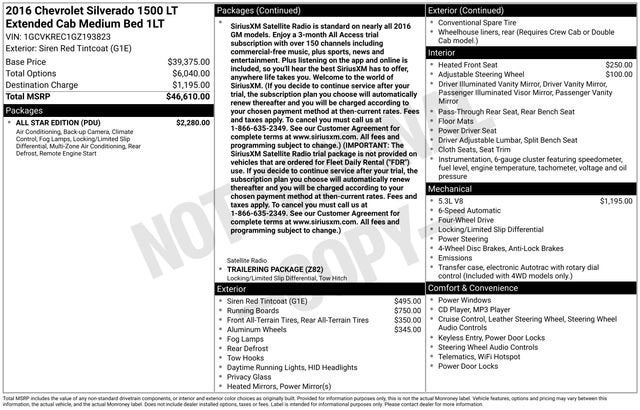 Siren Red Tintcoat 2016 Chevrolet Silverado 1500 LT LT1 4WD 6-Speed Automatic Electronic with Overdrive EcoTec3 5.3L V8 6-Speed Automatic Electronic with Overdrive, 4WD, Jet Black Cloth.*** Well Worth The Drive Dealer!!!!!!Reviews:* Quick acceleration and strong towing and hauling ability, thanks to available V8 engines; front seats are comfortable for long drives; cabin is pleasingly quiet at highway speeds. Source: Edmunds* Powerful, fuel-efficient engines; many available configurations; well-built, comfortable interior; quiet highway ride. Source: Edmunds